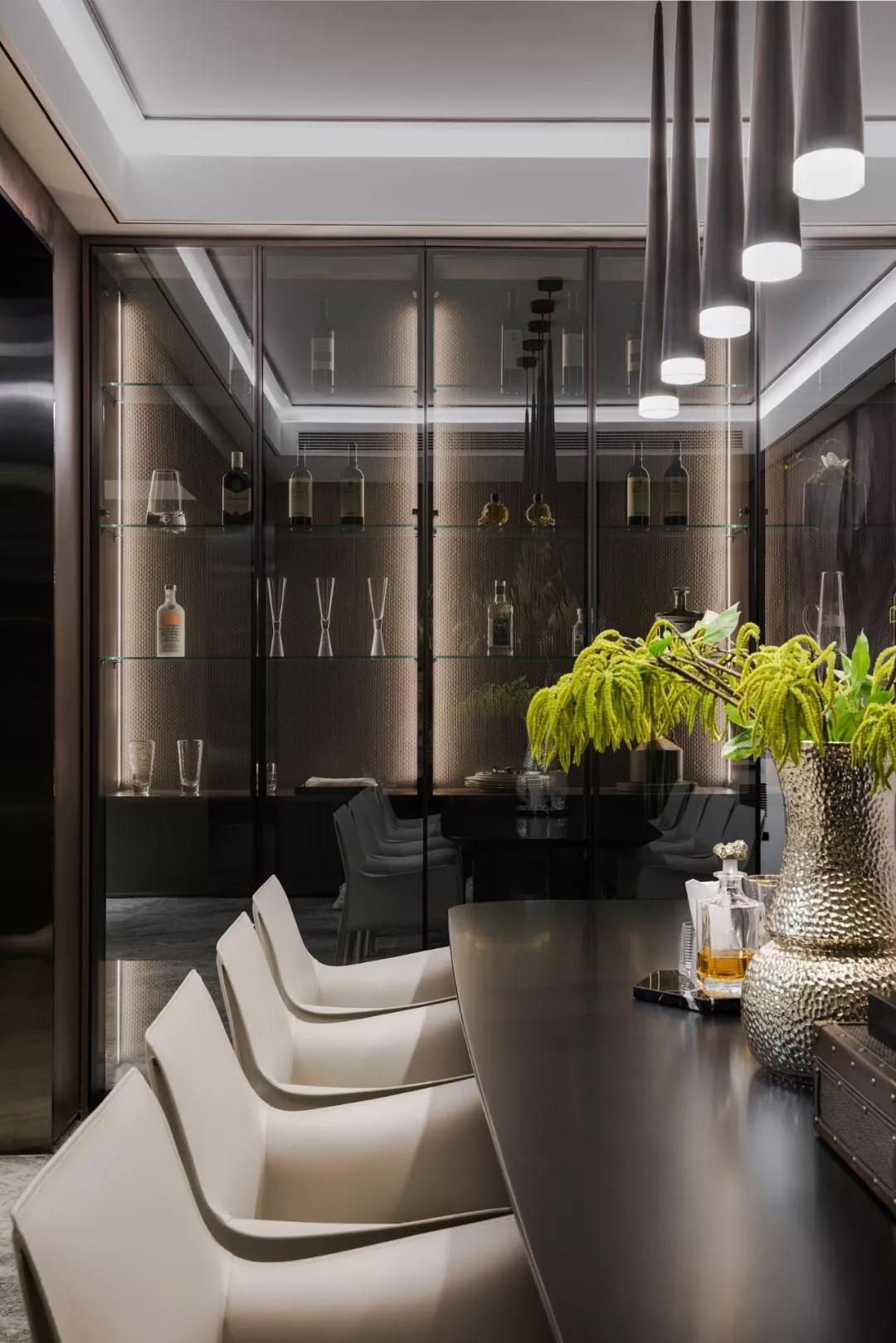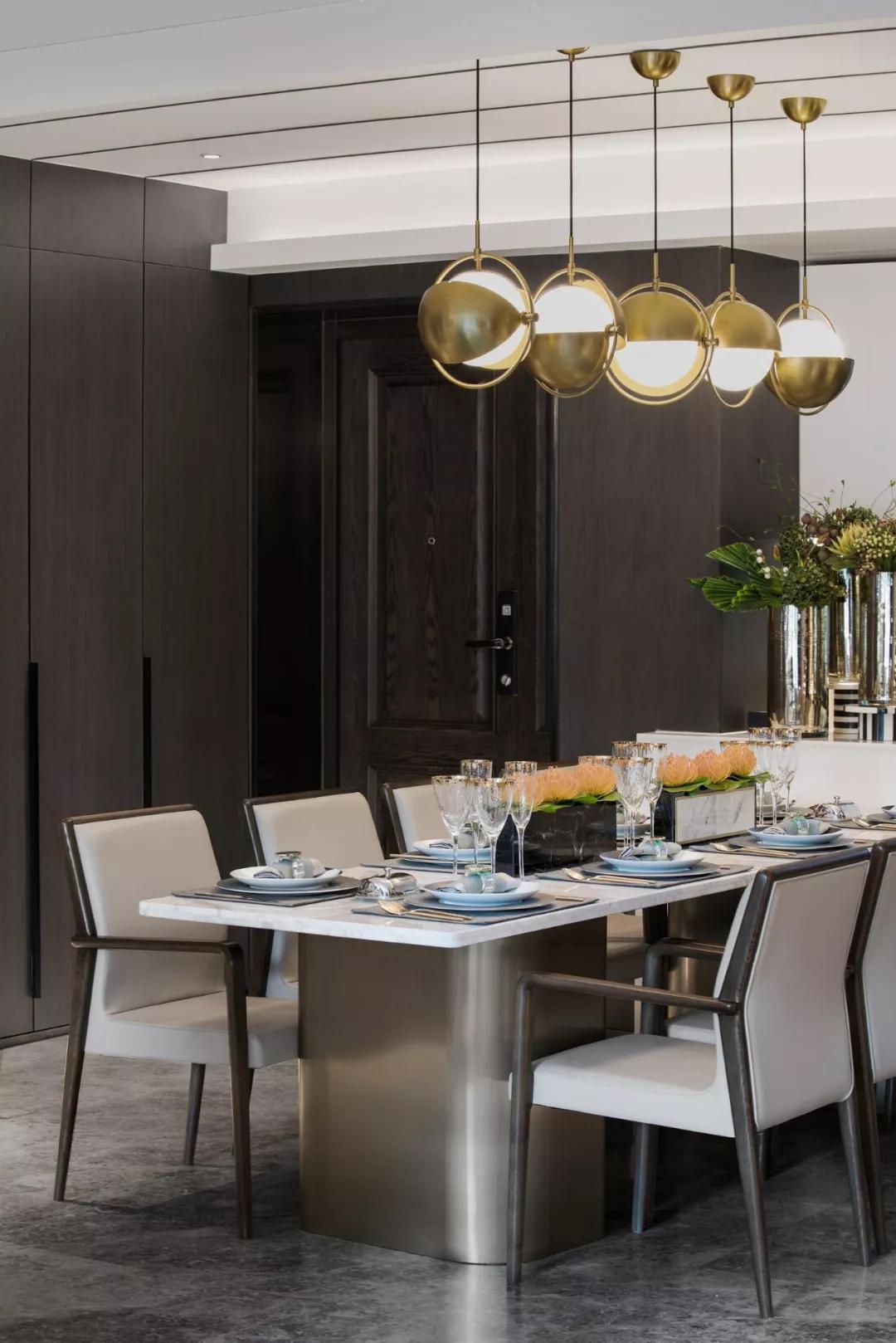 餐廳打破傳統的陳設布局方式,餐桌的縱向性布局和吊燈裝置陣列分布相呼應,飾品的擺放不再那麽規整,看似隨意的布局,增加国产精品放荡VIDEOS麻豆街的自由度和個性。
