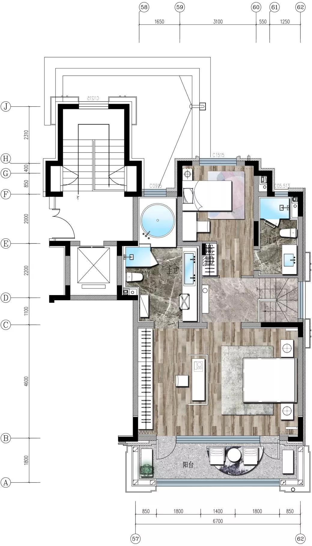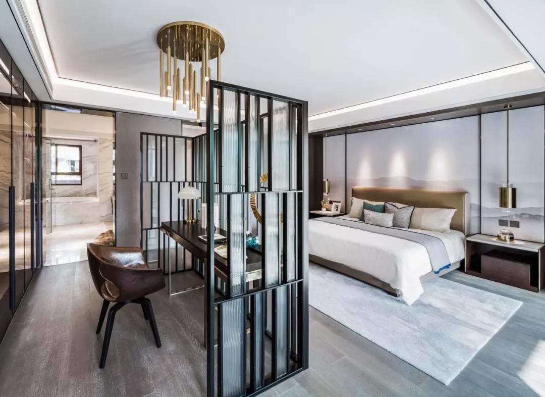 二層為主臥和女孩套房,具有最好的景觀資源,主臥坐擁最佳的室外景觀,連通開放式主衛及衣帽間。在現代精致美學之中,將材質的屬性對比,在工藝中表達出來,演繹當代美學的精髓。